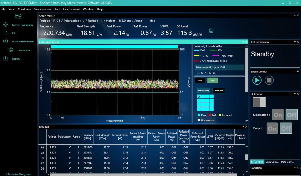 A linear verification for test system that is newly added in IEC61000-4-3 can be executed. However, test systems that are incapable of meeting 2dB correction cannot use the linear verification.